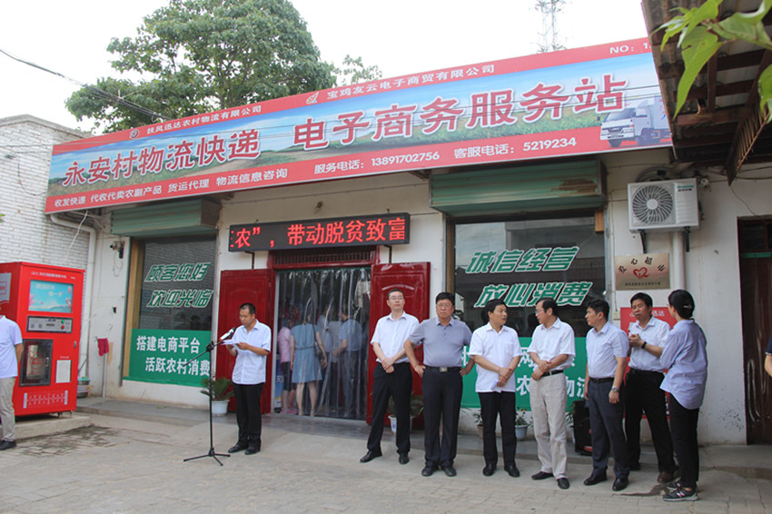 听完汇报后,大家参观了迅达农村物流法门镇永安村服务站,对迅达物流公司开展的“物流+电商+扶贫”模式进行了实地观摩。永安村服务站负责人辛占良现场向大家演示了自己怎样在迅达物流网购平台“印象扶风”下单订货的流程。他向大家介绍到:“我就是个普普通通的农民,一辈子都在跟土地打交道,前些年的时候,开起了小卖部,生意一直马马虎虎。以前需要订货的时候,总是要亲自跑去县城的批发市场,挨家挨户问价,费时费力不说,商品质量也没有保证。2015年的时候,我参加了迅达公司组织的培训会,一下子就被迅达物流这种新的模式所吸引,但是考虑到自己年纪大了,文化程度也低,总是怕学不会这些,所以一直在犹豫。后来,迅达公司的领导了解到这个情况后,专门派技术人员手把手的教我,连我自己也没想到都快60的我竟然也学会了通过电商做买卖,吃了定心丸后,我下定了决心,一定要跟迅达公司合作。签订合作协议后,迅达公司第一时间为我提供了货架、电脑、电视、网络、LED显示屏等设施设备,我也不用再像以前一样为订货到处跑了,只需在电脑上下单,迅达公司就会在当天将质优价廉的商品配送到我的店门口。商品质量保障了、种类丰富了、价格还优惠,我的买卖是越做越好。”