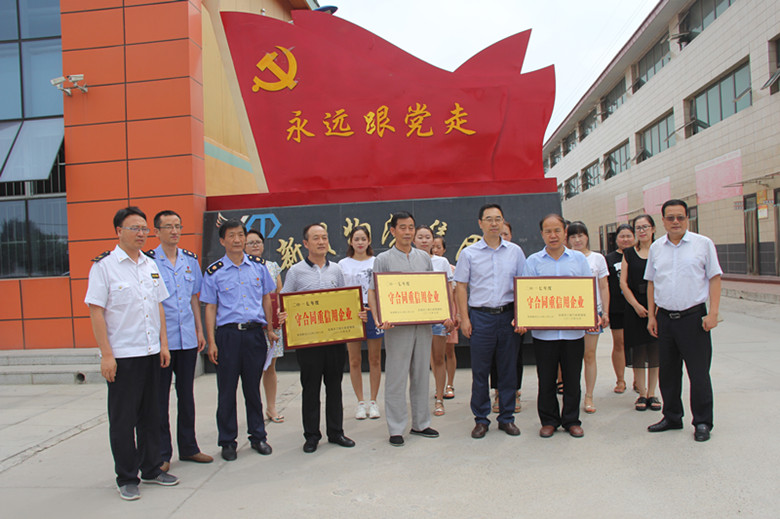 县市场监督管理局党委书记、局长马建文代表市工商行政管理局向3户企业负责人颁发了“守合同重信用”荣誉牌及证书。