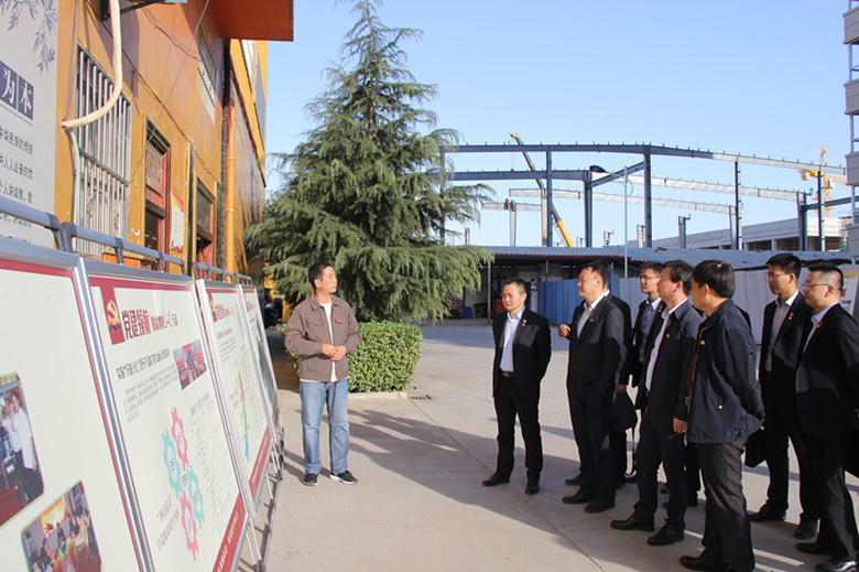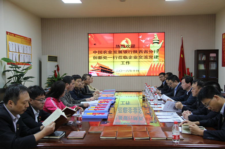 2018年10月10日,中国农业银行陕西省分行创新处赵明处长在市行安宁行长、县行张文波行长等陪同下来到陕西新贸集团观摩党建开展情况。