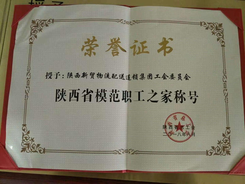 2018年3月,陕西新贸物流集团被省人社厅评为陕西省劳动关系“和谐企业”;9月,集团被省文明办、省工商联、省慈善协会评为“三秦帮扶善星”;10月,集团党总支被省委组织部评为省级“五星级党组织”荣誉称号。