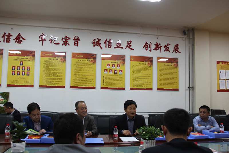 4月23日下午,江苏邳州市市场监督管理局党委书记、局长张汉权,副书记副局长孙良海一行七人在县委常委、组织部长张建彬,副部长、县非公经济和社会组织党工委书记朱鹏飞,市场监管局书记、局长马建文,县非公党委书记王金旗、副书记朱吉庆等陪同下莅临集团公司观摩调研非公党建工作。
