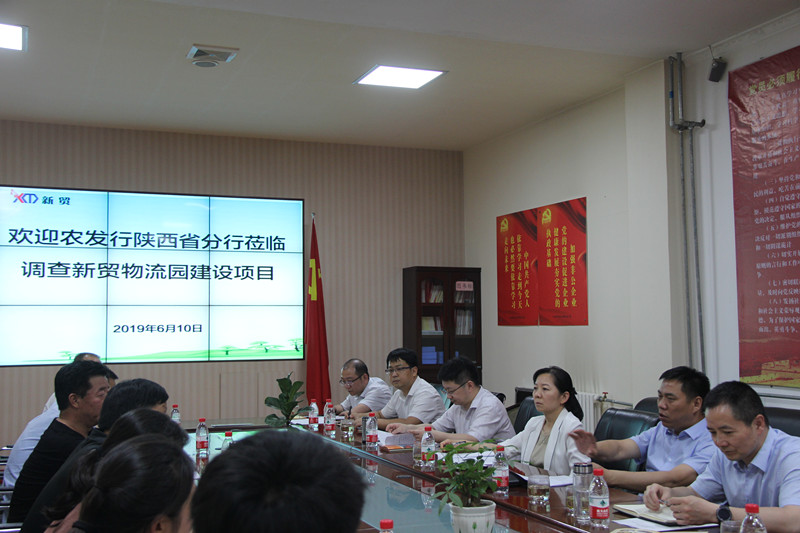6月10日下午,农发行陕西省分行扶贫处长李社辉、党群工作处长陈娜、科长刘磊、胡刚,市行行长安宁、副行长孟江磊、张文波、客户科长姚永英,县行行长雷鸣、副行长杨浩、客户经理施洋等一行莅临集团公司调研。董事长李林森、总经理马新林、监事会主席李彩会、副总经理李靖、董事长助理马应虎陪同调研。