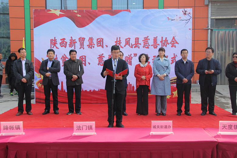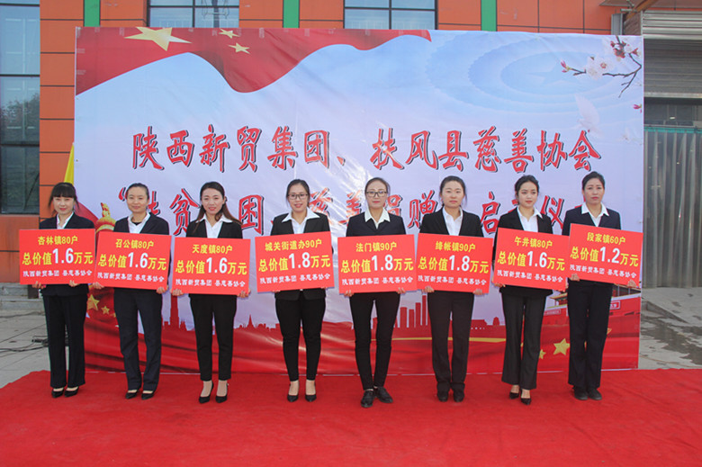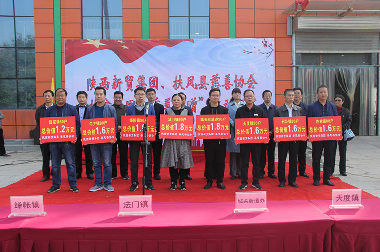 2019年10月17日上午,陕西新贸集团、扶风县慈善协会联合举办的“扶贫济困、慈善捐赠”活动启动仪式在集团下属的百和超市门前广场成功举行。县委、县人大、县政府、县政协领导莅临大会指导,县民政局、县文明办、县扶贫办、各镇(街)领导出席活动。