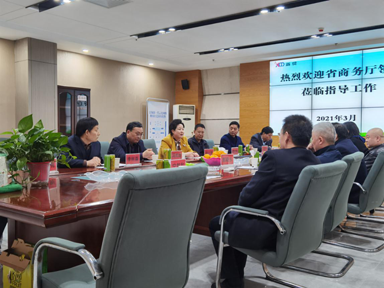 在实地察看了陕西新贸农副产品交易市场、新贸现代物流园等项目建设现场后进行了座谈。首先鲍小凤副县长就我县商务工作情况向大家进行了简要介绍。随后,李林森董事长就新贸集团企业发展及重点项目建设情况向各位领导做了详细汇报。听取汇报后,毕平阳调研员代表调研组进行讲话。他指出,新贸集团作为全国商贸流通服务业先进企业,长期以来在李林森董事长等一班人的带领下,先后承担实施“国家万村千乡市场工程”、“陕西省镇超工程”、“国家电子商务进农村示范项目”,不断将企业发展壮大,企业和法人多次受到商务部、省商务厅的表彰,已成为我省商贸流通领域的一面旗帜。希望新贸集团借助现代物流园等重点项目的实施,积极开展农村物流三级网络体系建设,为推动农村物流发展和拓展农村商贸流通建设做出更大贡献。