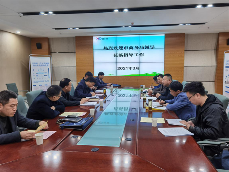 听取汇报后,各位领导对我集团物流园区建设和农村物流三级体系建设运营情况进行了充分肯定。黄宁安副局长表示:根据市政府、市商务局有关安排,计划在全市各县区完善内贸流通体系建设,以助力乡村振兴事业。新贸集团作为扶风乃至全市商贸流通龙头企业,长期以来始终致力于商贸流通体系的建设,不仅拥有新贸现代物流园这个基地,更是有完善的镇村站点和物流配送体系,希望新贸集团紧抓机遇,加快完善县乡村三级农村物流体系,改造提升物流基础设施,推动城乡生产与消费有效对接,加快推进物流园区二期进度,为扶风经济建设作出新贡献。