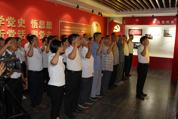 大会开始前,集团党总支书记李林森带领各位新老党员同志,集体参观了“新贸党建馆”。该馆是集团党总支为向建党100周年献礼而精心策划建设的,于日前正式落成开放。大家在参观的过程中一起回顾了中国共产党党史、非公经济党建发展历程及新贸集团发展史,并在鲜红的党旗下,重温入党誓词。