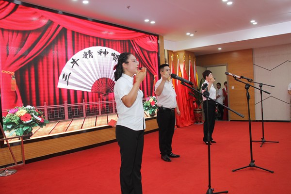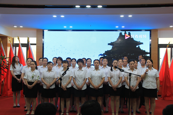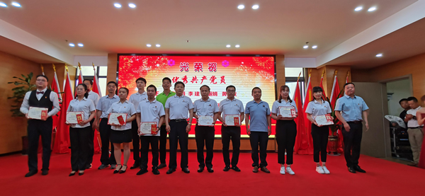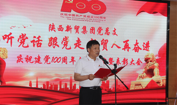 6月26日下午2时,为隆重庆祝中国共产党成立100周年,集团党总支“听党话、跟党走,新贸人再奋进”文艺汇演暨表彰大会在公司大礼堂举行。县非公党委、工商联、商信局、新兴产业园管委会等部门有关领导出席。集团荣获“光荣在党50年”纪念章的5名老党员代表、在岗全体党员、预备党员、积极分子及职工代表共计230余人参加。