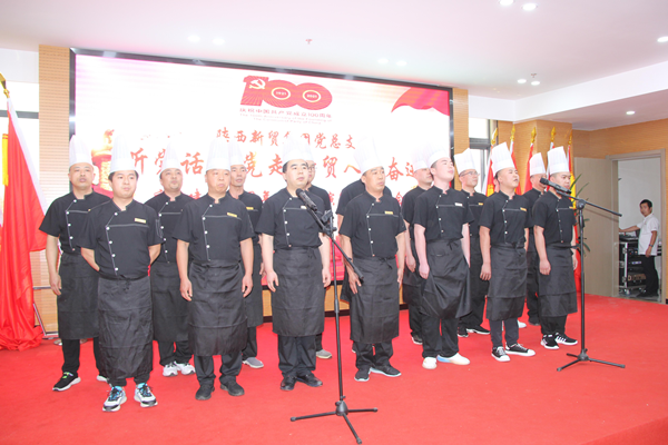 随着歌曲《中国人》的激情演唱,本次活动正式进入文艺汇演部分。党总支下设的七个党支部、集团公司杨凌凤凰酒店以及陕西航优果生堂食品公司分别选送了不同节目登台表演。大家载歌载舞共庆党的百年华诞,欢声笑语共筑新贸发展基石。