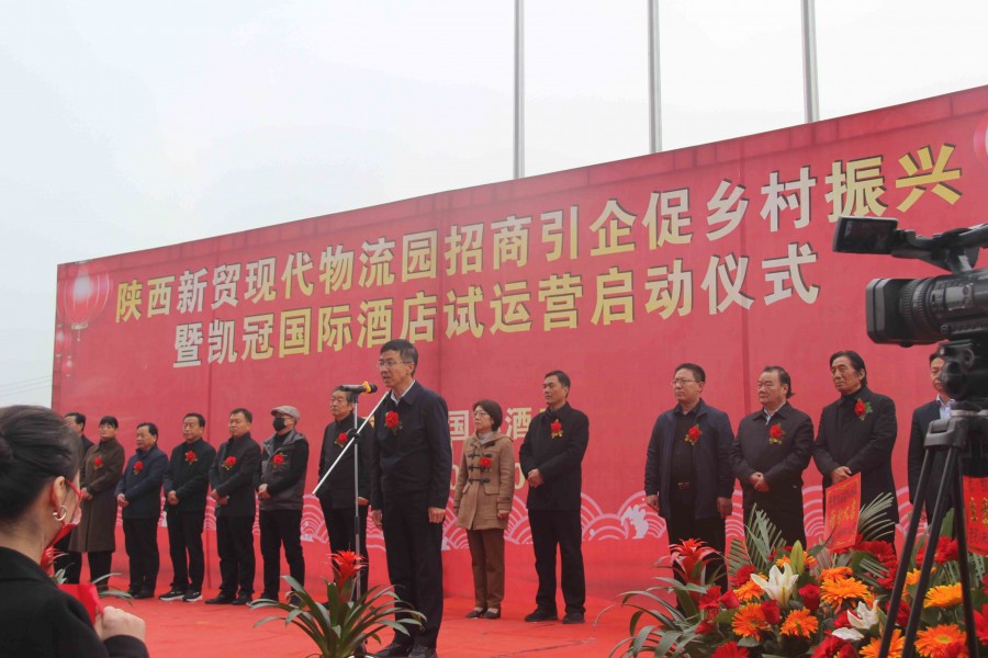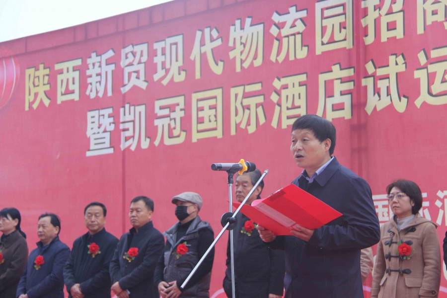 启动仪式由县商信局局长冯虎成主持,集团董事长李林森发表了热情洋溢的致辞。他指出,陕西新贸集团以商贸流通业起步,从一家濒临破产的老国有企业,改制发展成为目前拥有商贸流通、物流配送、酒店餐饮、地产开发、资产租赁、电子商务、物业管理、农业产业化经营等八大产业的多元化、跨区域的股份制集团公司。集团公司实施“电子商务+现代物流园+物流配送”的发展战略,在扶风县城新兴产业园启动建设陕西新贸现代物流园。园区总投资12.3亿元,占地252亩,建设面积逾30万平方米。其中一期占地112亩,投资4.58亿元,目前已交付使用面积11万余平方米,入驻有快销用品、物流快递、果蔬批零、饮料加工、汽配服务、医疗器械等6大类36户企业,初步形成产业规模。依托物流园建设运营的县镇村组(户)四级农村物流体系“迅达模式”也已高效运营。集中、统一、高效的配送模式建设和“专业化、信息化、现代化”农村驿站的搭建,不仅解决了农村物流配送“上下行一公里”难题,而且极大提升了农村居民的消费、生活水平,更为乡村振兴物流产业发展贡献了“新贸智慧”,交出了“新贸答卷”,列入交通运输部全国“农村物流服务品牌”名单。