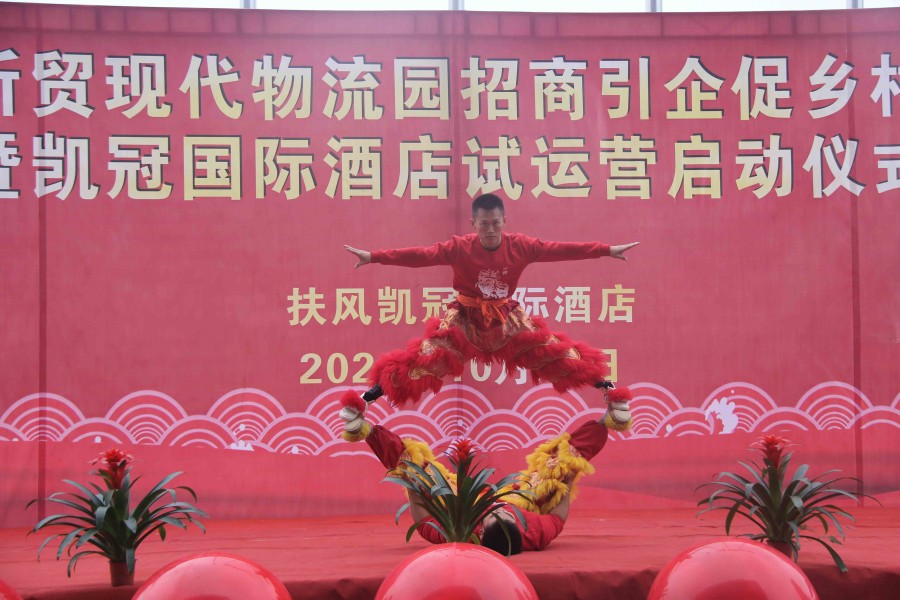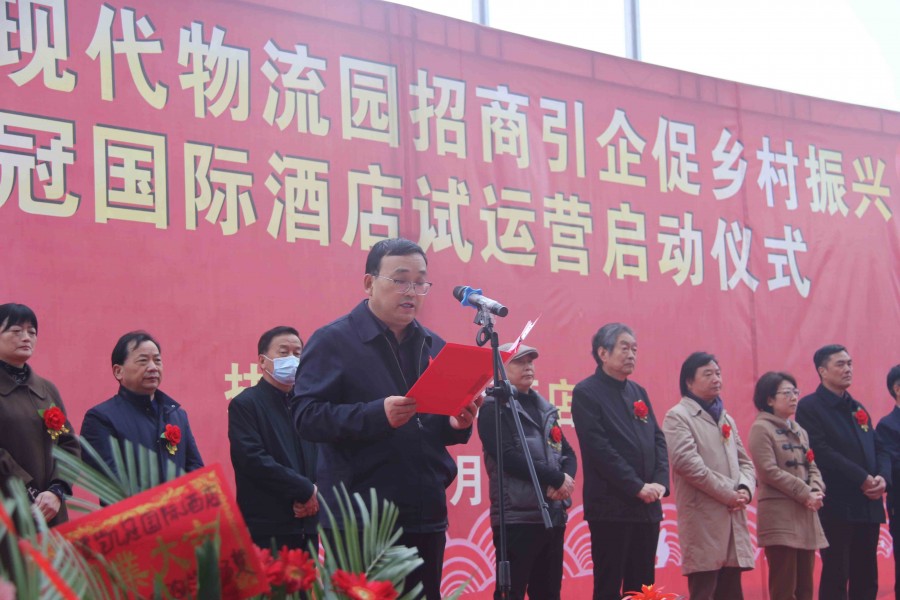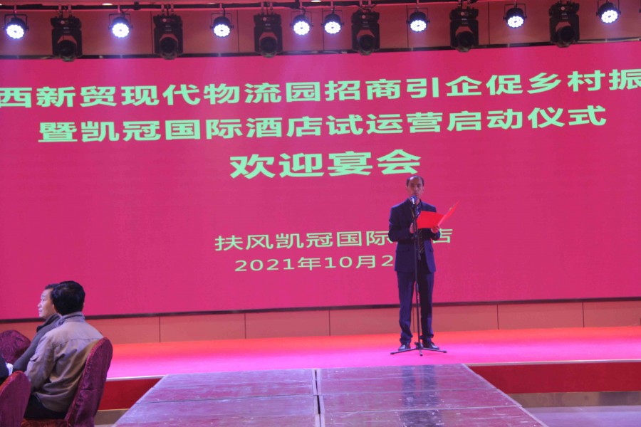 20日上午,秋高气和,红叶似火,福地凯冠,锣鼓喧天,宾客云集。陕西新贸现代物流园招商引企促乡村振兴暨凯冠国际酒店试运营启动仪式在扶风凯冠国际酒店隆重举行。省作家协会副主席、西安市作家协会主席、鲁迅文学奖得主吴克敬、省美术家协会副主席、陕西省美术博物馆馆长罗宁、中国美术家协会会员、陕西省中国画学会副会长、西安美术学院教育学院原院长、教授李玉田、市商务局局长段葆青、副局长霍海利、市民企协会执行会长刘一良、县委常委、纪委书记王科让、县人大副主任董东生、县政府副县长王军、县政协副主席李文晖、市书画家协会名誉主席晏道生、主席张鹏洲、市中小企业协会会长王海文、浦发银行宝鸡分行副行长焦刚、市书画家协会顾问、法门寺书画院院长刘民生等领导出席启动仪式。中国仓储物流协会、省物流与采购联合会、北京天九共享集团等单位也向本次活动发来贺电。