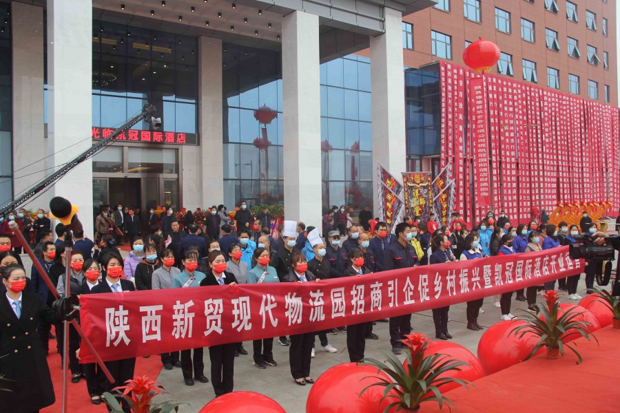 县委常委、纪委书记王科让宣布“陕西新贸现代物流园招商引企促乡村振兴暨凯冠国际酒店开业运营”后,现场锣鼓齐鸣、彩球放飞、礼炮震天,将本次活动推向了最高潮。