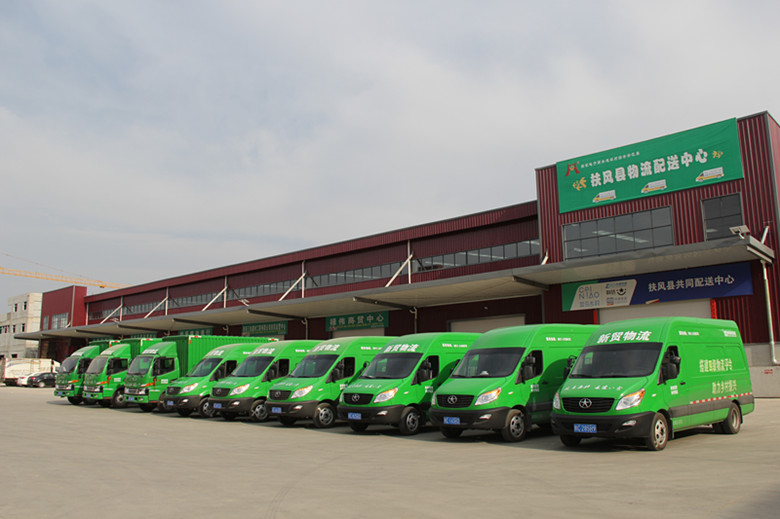 随着物流园一期项目的建成,集团公司旗下扶风迅达农村物流公司依托物流园为基础发展农村物流,一是新购置配送车辆15辆,其中冷藏车2辆,搭建物流、电商信息交易平台1个,配置物流叉车3辆,托盘、周转箱各1万个,监控、GPS、分拣等物流设施设备30余台(套);二是对分布在全县所有行政村和较大自然村的原公司“万村千乡市场工程”、“镇超工程”发展建设的303处直营超市进行“现代化、信息化、专业化”改造,打造成为具有电子商务、快递收发、代收代卖等功能的新型“驿站”网点;三是在新贸现代物流园建设并运营扶风县共同配送中心,为入园企业的各类商品提供统一配送;四是开通串联起各个网点的6条物流配送线路。通过以上措施,搭建了农村物流县镇村组(户)四级物流服务体系的“迅达模式”,实现了“一县一仓配、一镇一中心、一村一网点、一组(户)一配送”。2021年9月,“迅达模式”入选交通运输部第二批农村物流服务品牌名单,成为我省第二批唯一入选的农村物流服务品牌。