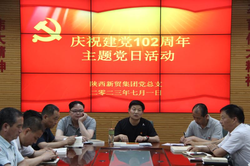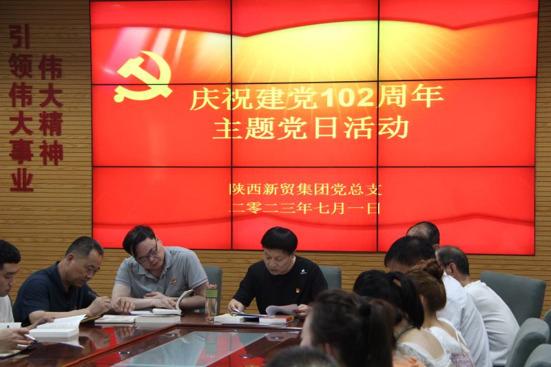 7月1日上午9时,由陕西新贸集团党总支组织天宝置业党支部、凯冠酒店党支部等八个支部32名党员代表,在党员活动室举行以“推动学习贯彻习近平新时代中国特色社会主义思想走深走实”为主题的主题党日活动,庆祝建党102周年。